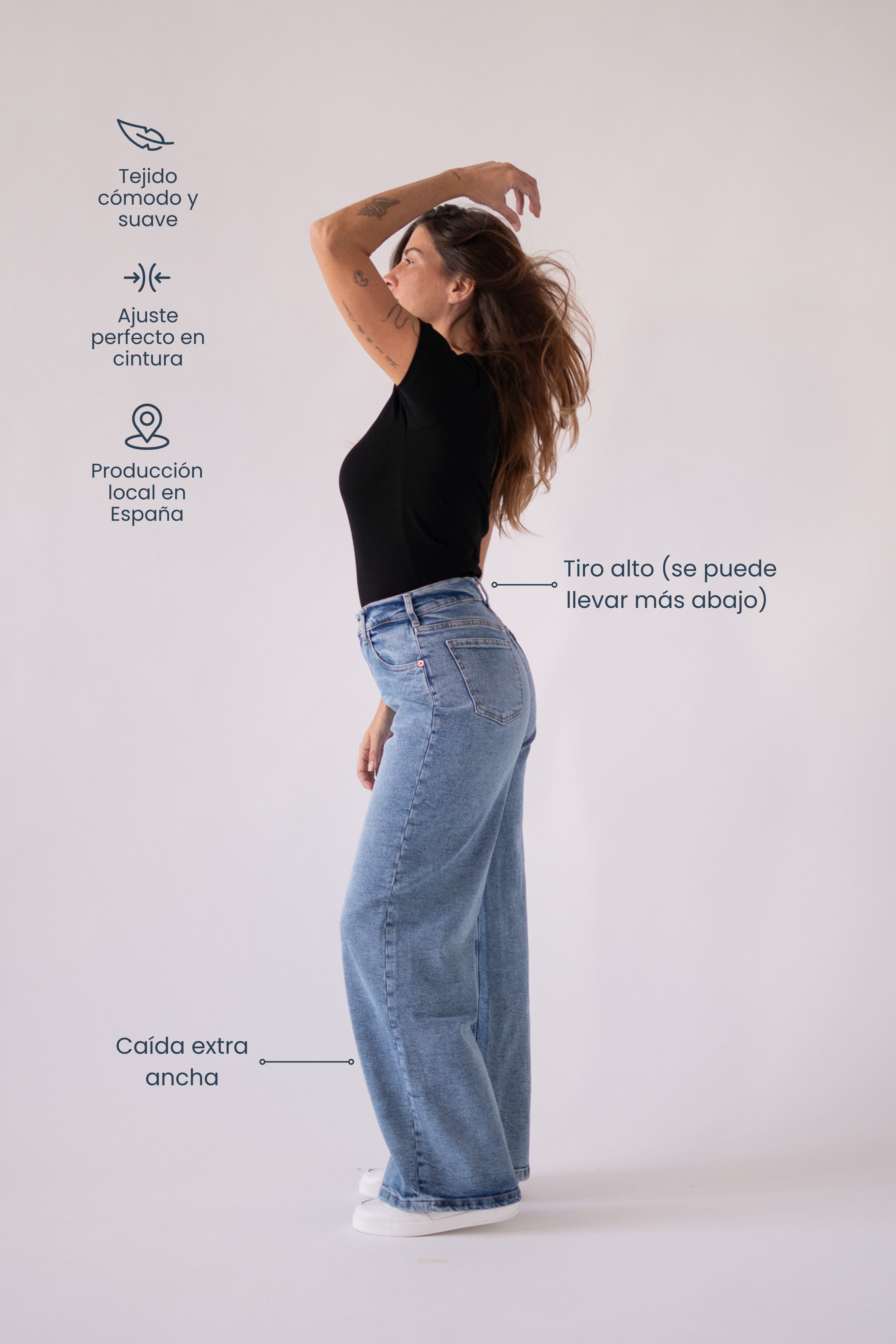 La majoria de texans de cama ampla del mercat són rígids i és molt complicat trobar uns que quedin perfectes i que siguin còmodes. A Matcha Jeans hem aconseguit la solució: crear uns texans que mantinguin l'estructura d'aquests, però que siguin comodíssims i que s'adaptin perfectament al teu cos.