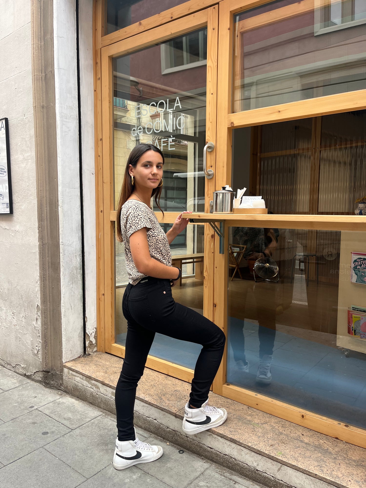 La model principal medeix 163 cm i porta una S. La model secundària medeix 174 cm i porta una M.