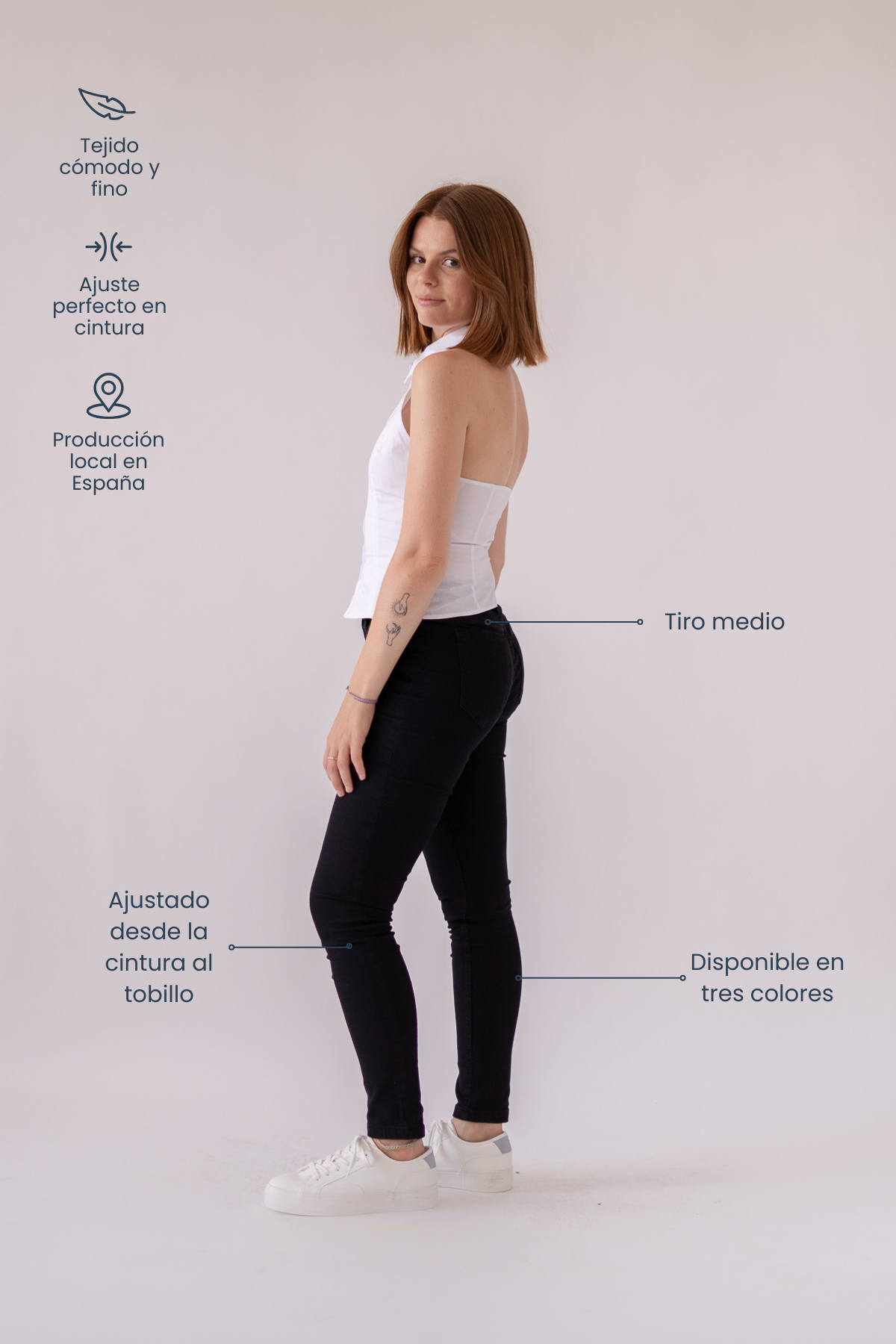 Us presentem els nostres jeans còmodes que s’ajusten a la cintura i malucs amb acabat estret fins al turmell: el model Skinny - THE ORIGINAL. Es fabriquen amb un teixit d’alta qualitat molt elàstic que fa que siguin comodíssims, sense perdre l’aparença d’un pantaló texà tradicional.