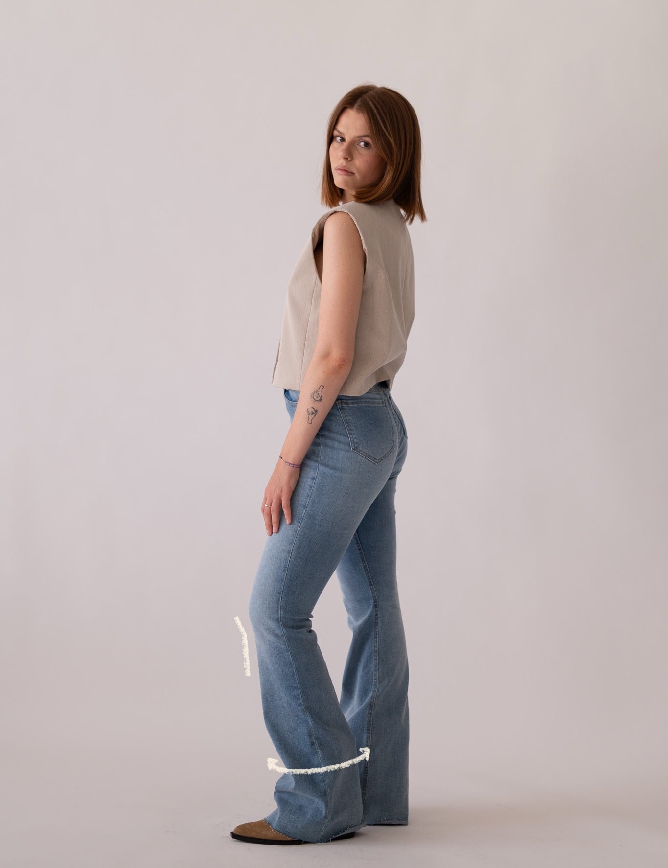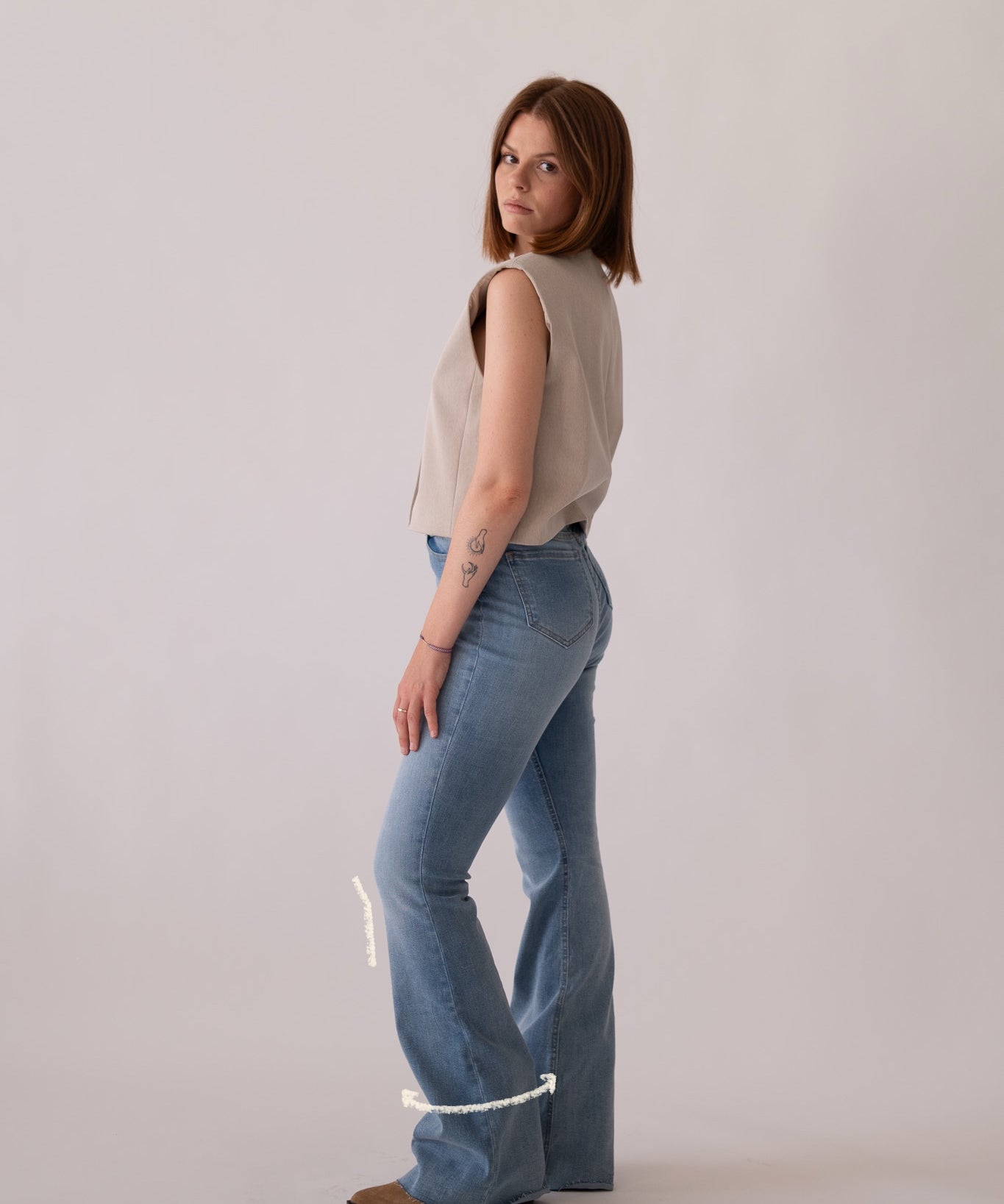 Treballem amb teixits denim mooolt elàstics que permeten moure's amb total llibertat sense que es perdi el look&feel d'uns texans tradicionals.