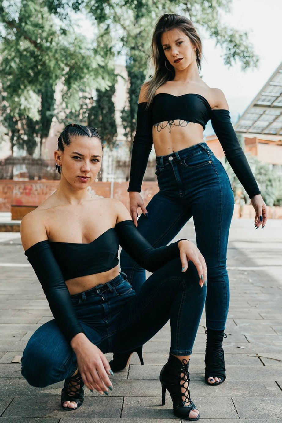 La model principal mesura 160 cm i porta una XS