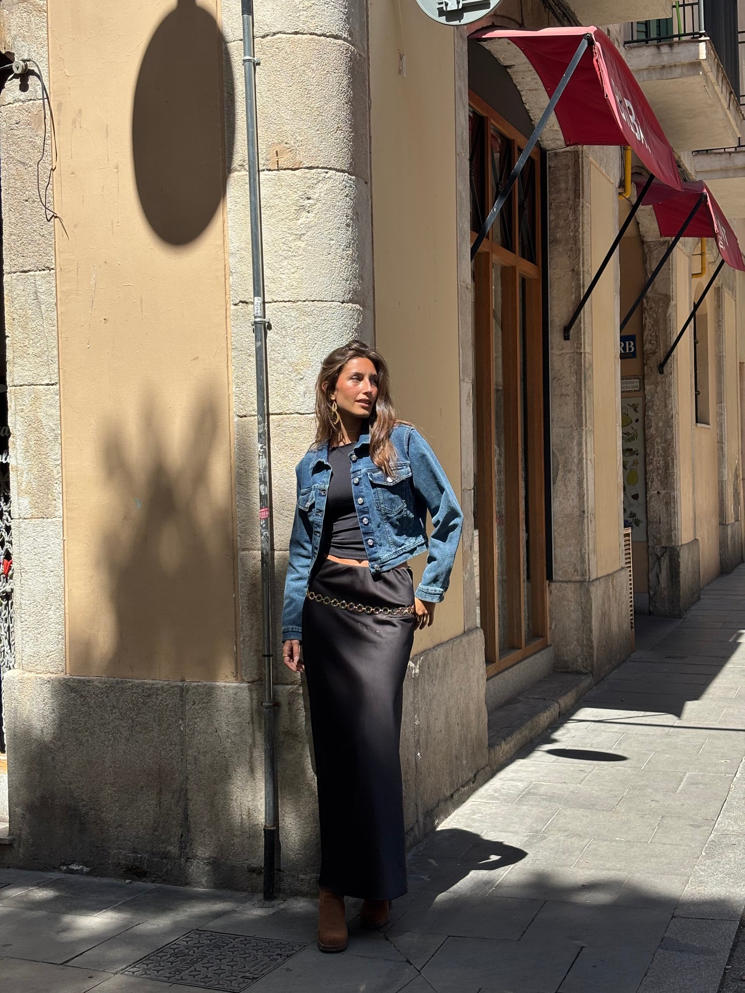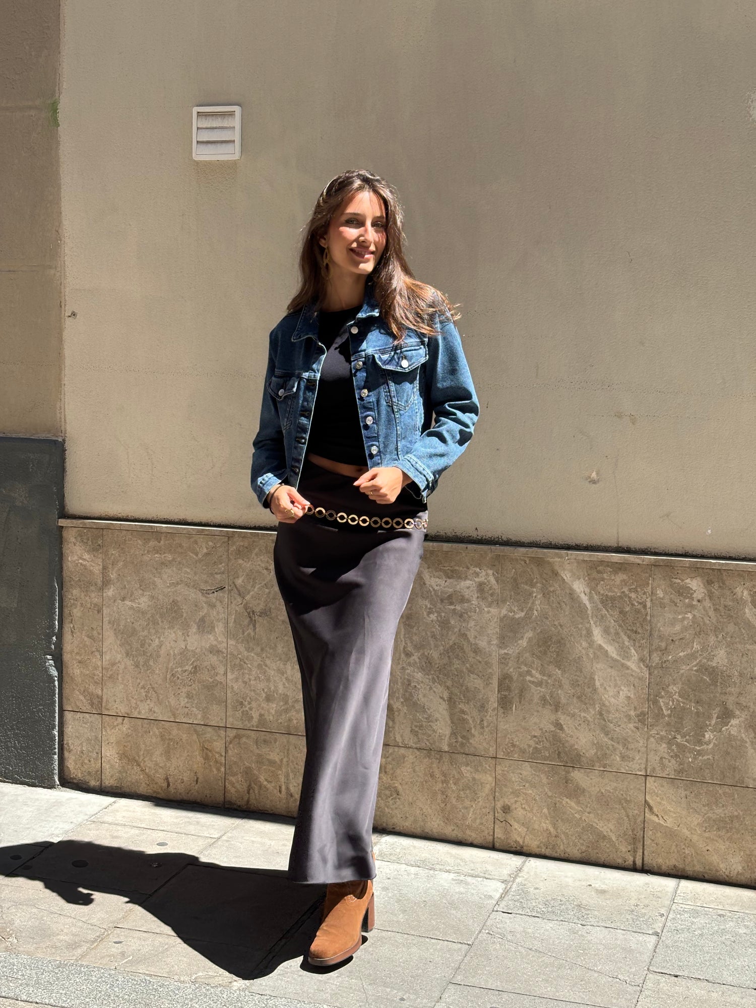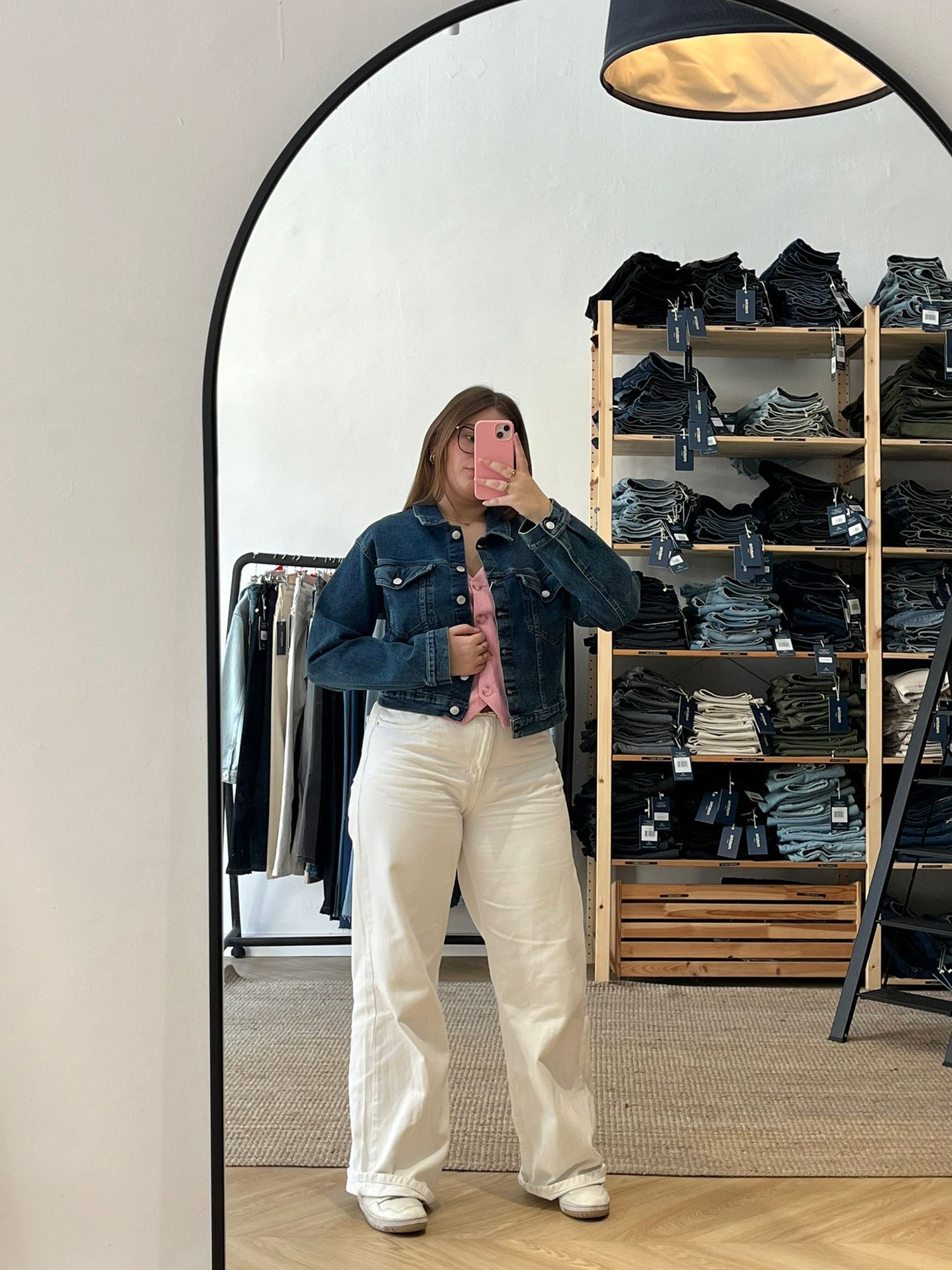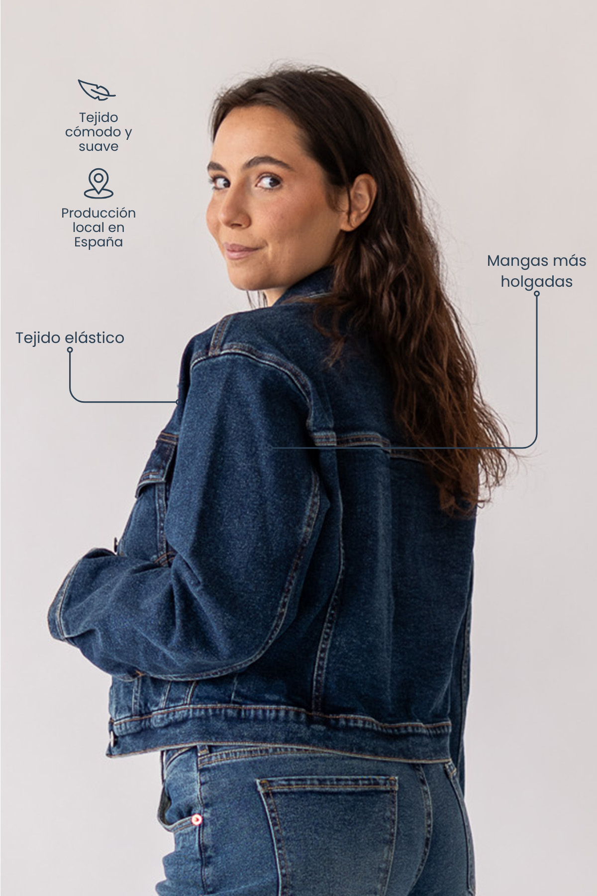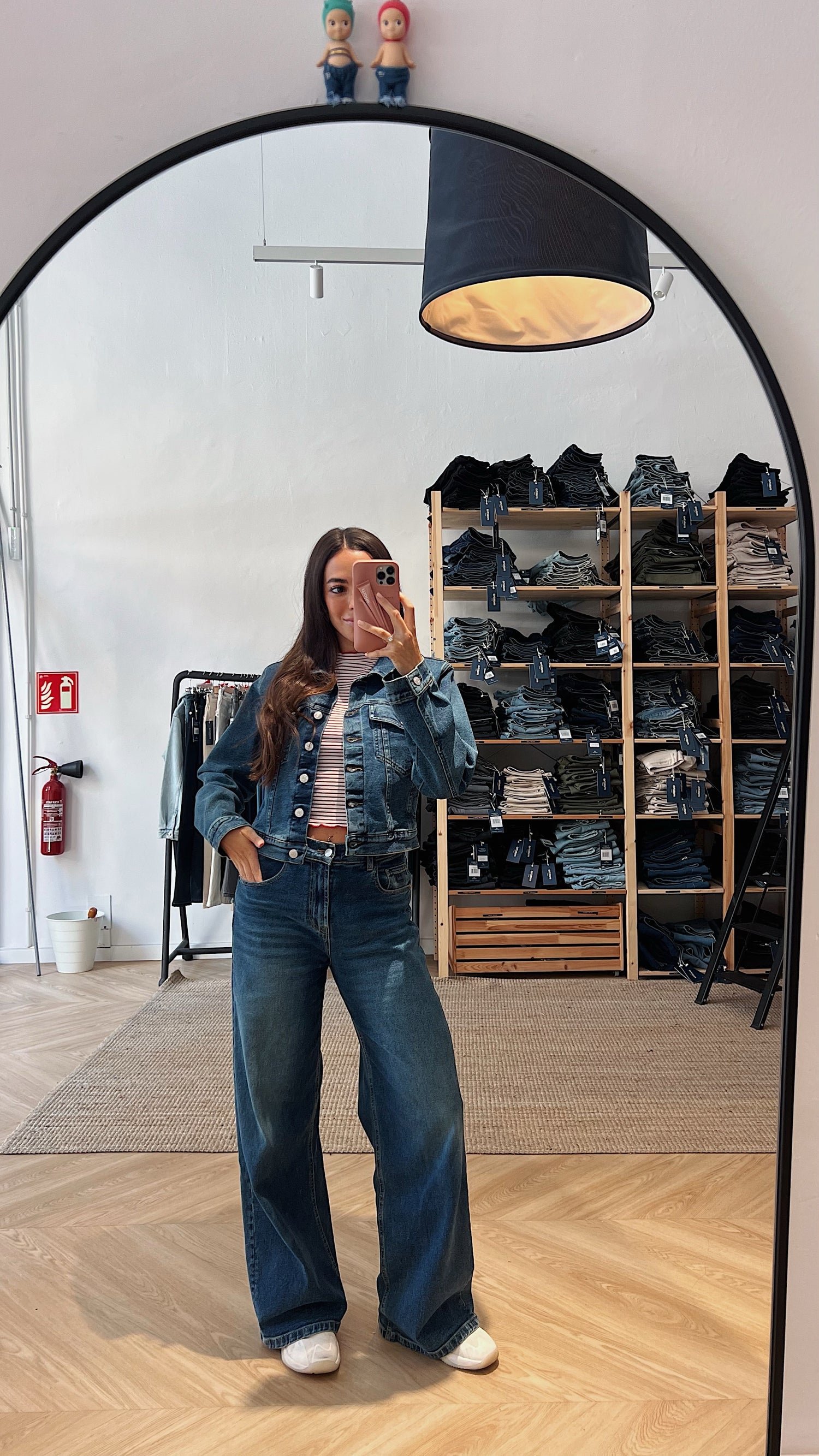 El seu tall entallat al cos realça la silueta, mentre que les mànigues, lleugerament més llargues i amples, aporten un aire actual i desenfadat. Té la llargada perfecta per combinar amb els nostres Matcha Jeans.