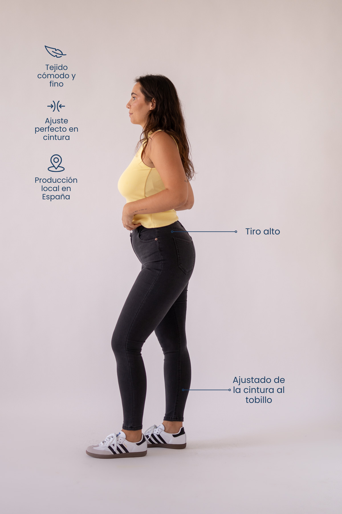 Us presentem els nostres jeans còmodes que s’ajusten a la cintura i malucs amb acabat estret fins al turmell: el model Skinny - THE ORIGINAL. Es fabriquen amb un teixit d’alta qualitat molt elàstic que fa que siguin comodíssims, sense perdre l’aparença d’un pantaló texà tradicional.