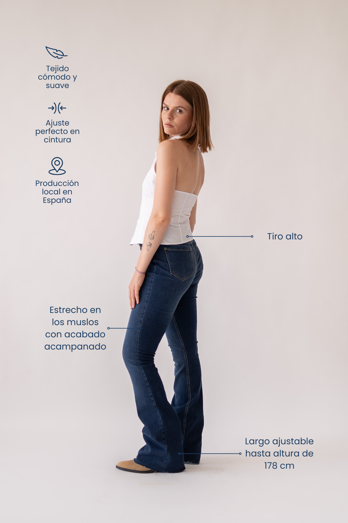 We present our comfortable jeans that fit at the waist and hips with a flared finish: our Flare - THE CUTE model. This model is designed to stylize and flatter your figure giving it a more elegant touch. Go out to dinner, to dance, for a walk... with the greatest possible comfort without leaving your style aside.