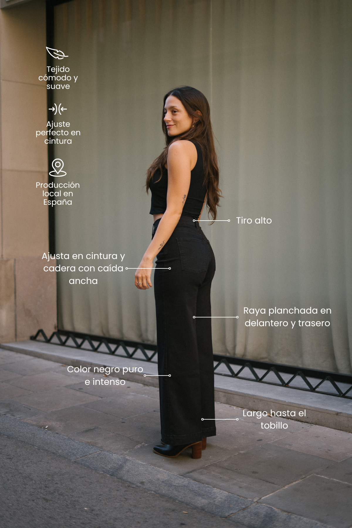 The model CULOTTE HIGH RISE fits at the waist and hips and has a wide finish. It is undoubtedly the pants of the moment.