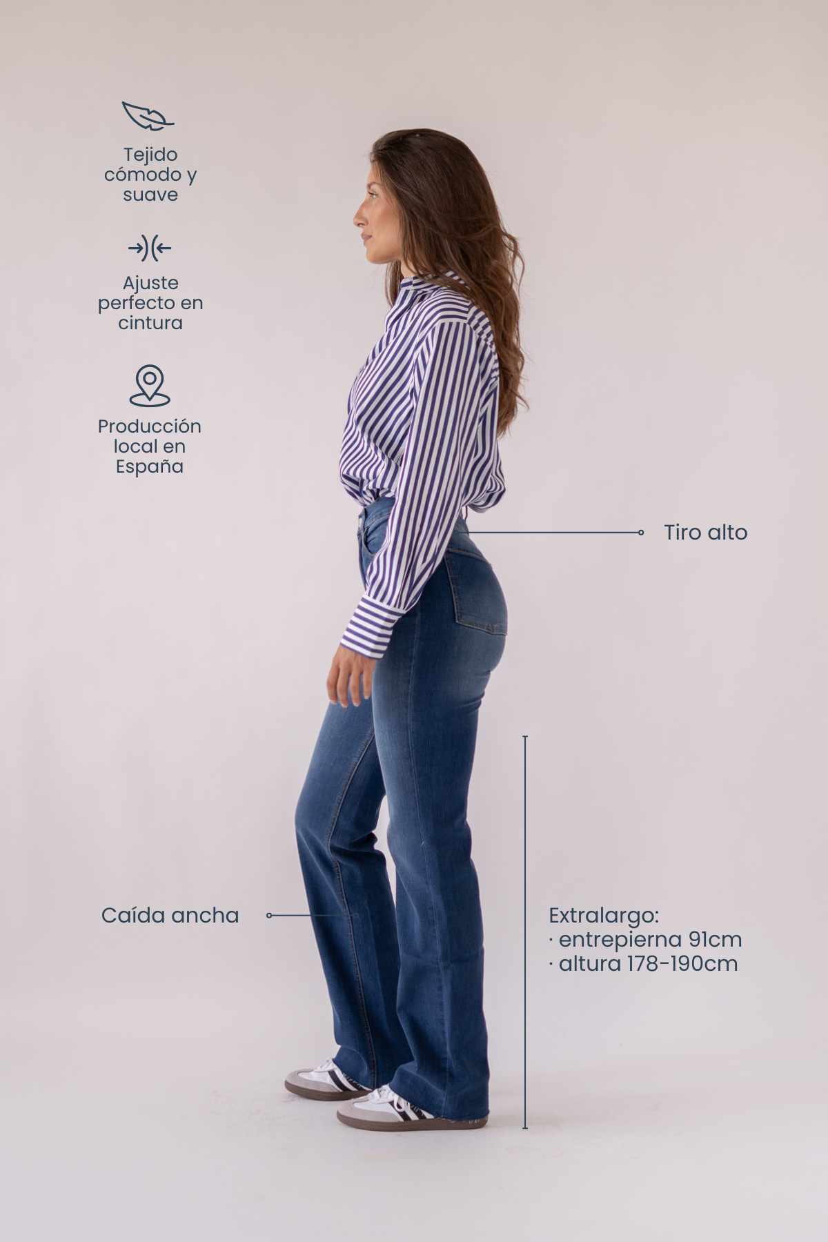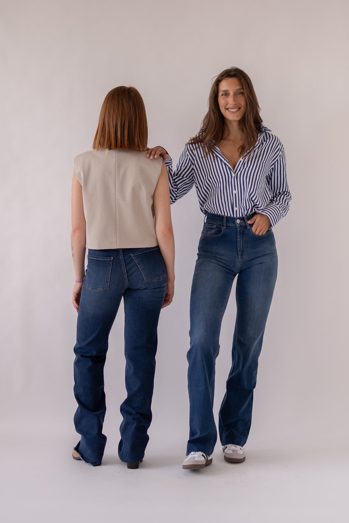 We present to you our comfortable jeans that fit at the waist and hips with a wide finish: our Wideleg - THE AIRY model, undoubtedly the trousers of the moment. Most wide leg jeans on the market are stiff and it is very difficult to find jeans that fit perfectly and are comfortable. We have managed to create a jean that maintains the structure of these, but that is extremely comfortable and adapts perfectly to your figure.