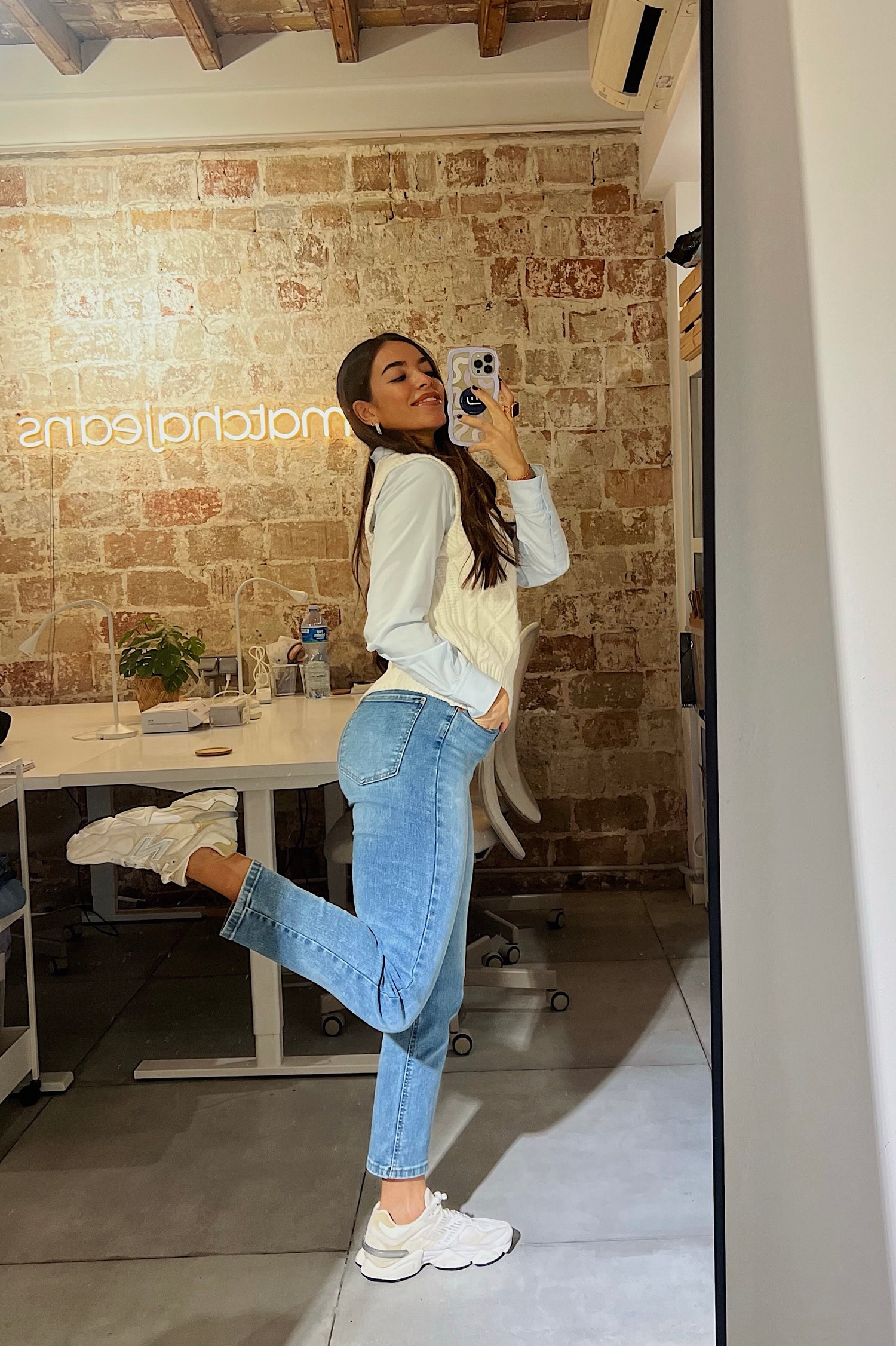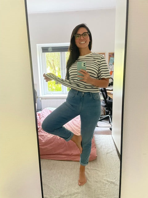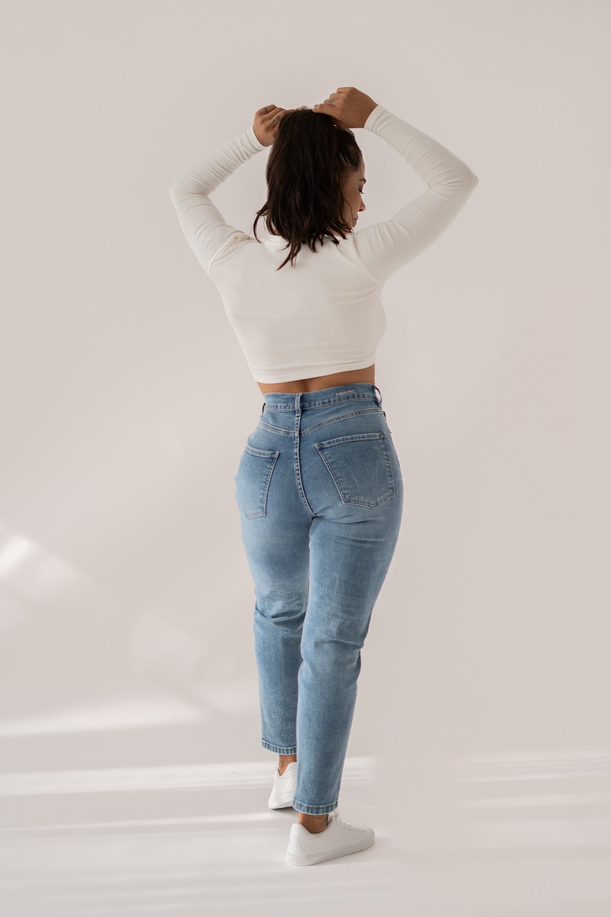 The style Mom - THE NOSTALGIC is fitted around your waist and hips and has the same characteristics as the popular style of the 80s-90s. Most mom jeans on the market are rigid and it’s very hard to find some that fit perfectly and are comfortable. At Matcha Jeans we have found the solution: create a pair of jeans that has the same structure, but is super comfortable and adapts perfectly to your figure.