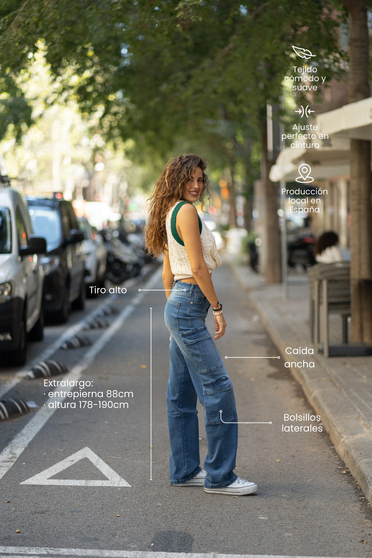 El modelo Cargo - THE BOLD se ajusta a la cintura y caderas y tiene el acabado característico del pantalón más cool del momento, ancho y con bolsillos. Se puede llevar ajustado y alto escogiendo tu talla habitual, o más ancho y bajo escogiendo una talla más. Eso lo decides tú :)