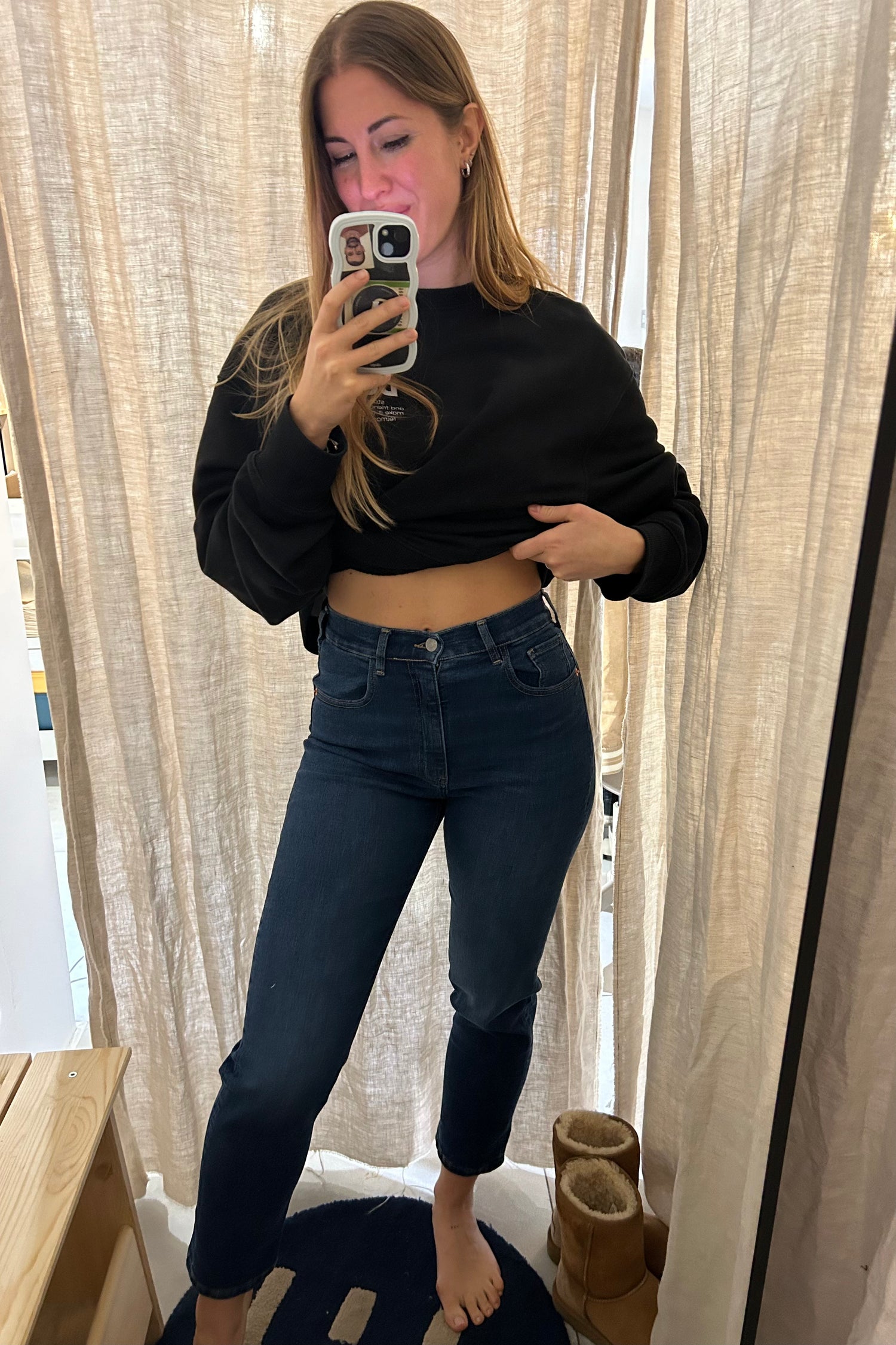 Enfin le jean que j'attendais : extensible, taille haute, poches bien placées. Il est confortable et parfaitement coupé. Dès que je le peux, je l'achète en gris.