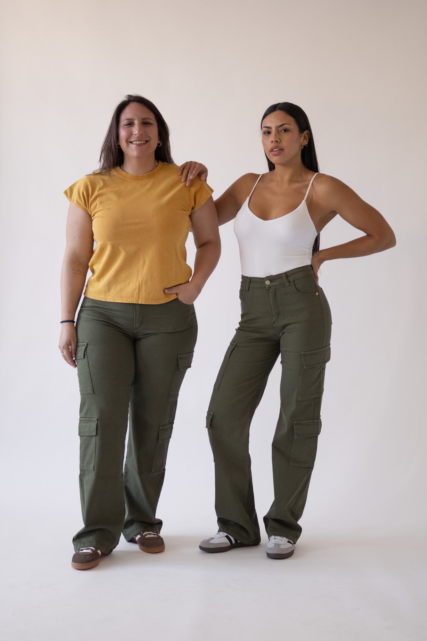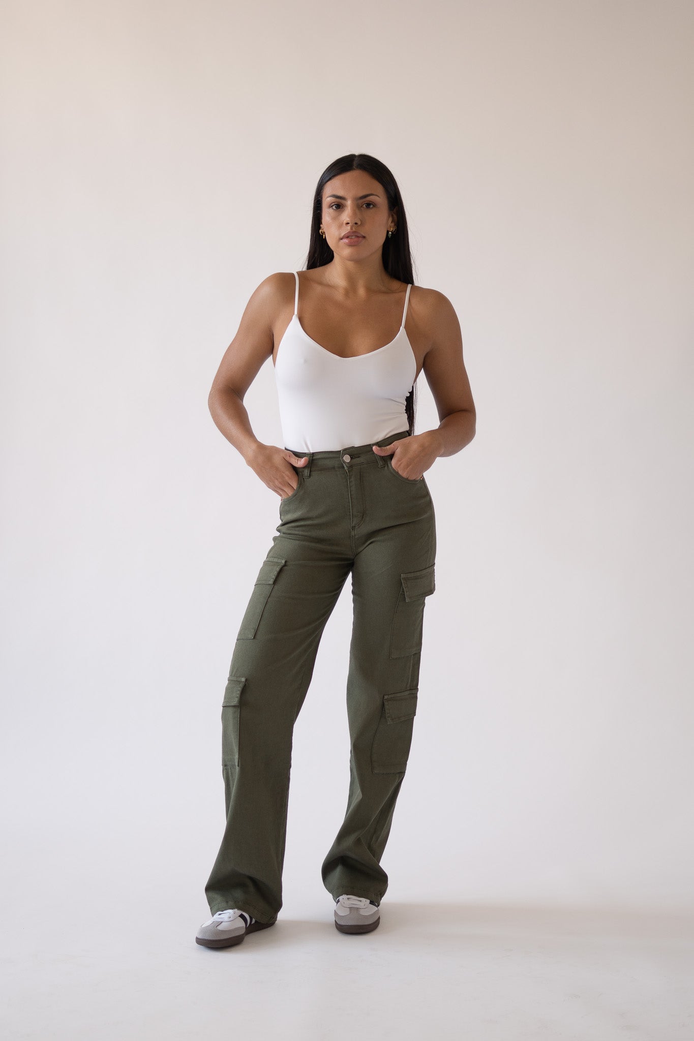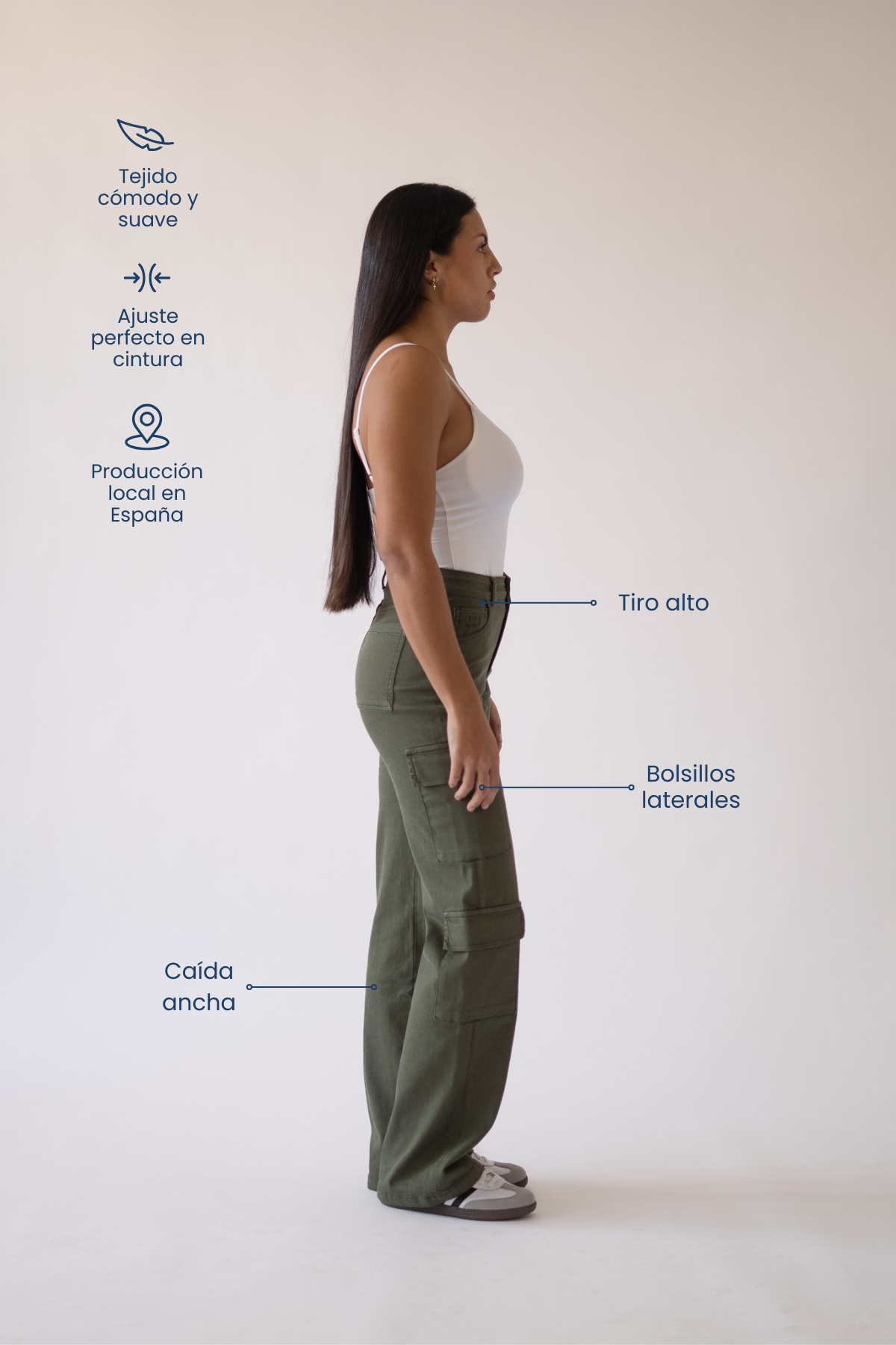 El modelo Cargo - THE BOLD se ajusta a la cintura y caderas y tiene un acabado ancho y con bolsillos. Es sin duda el pantalón del momento.
