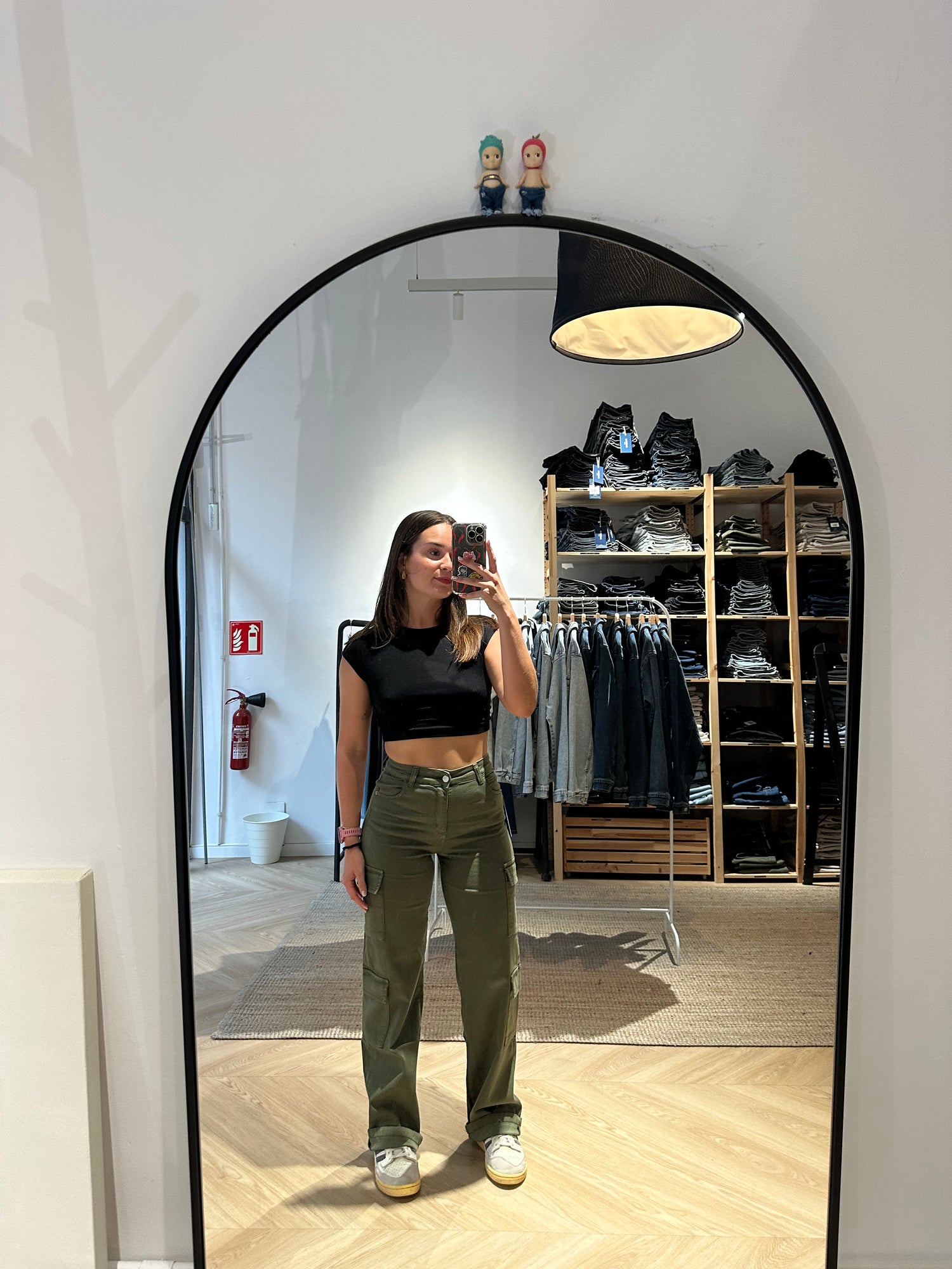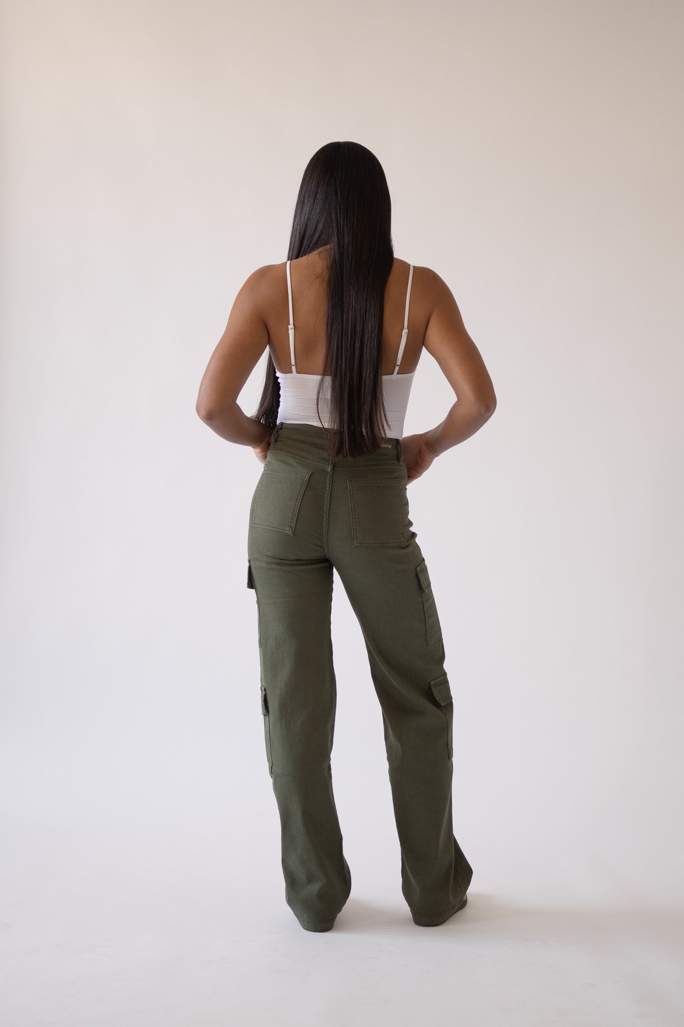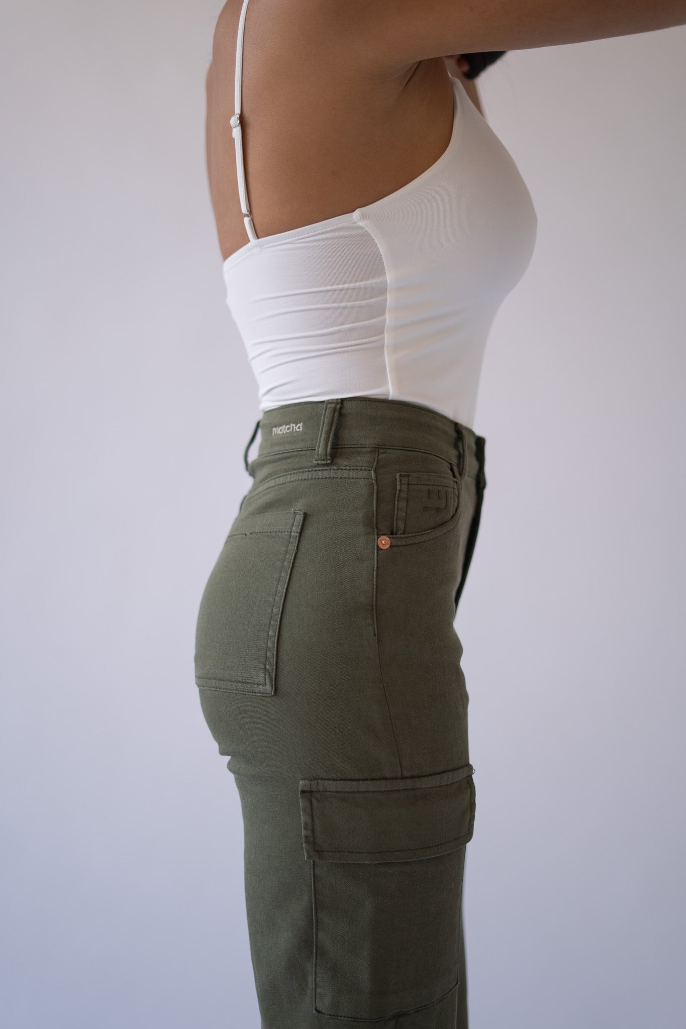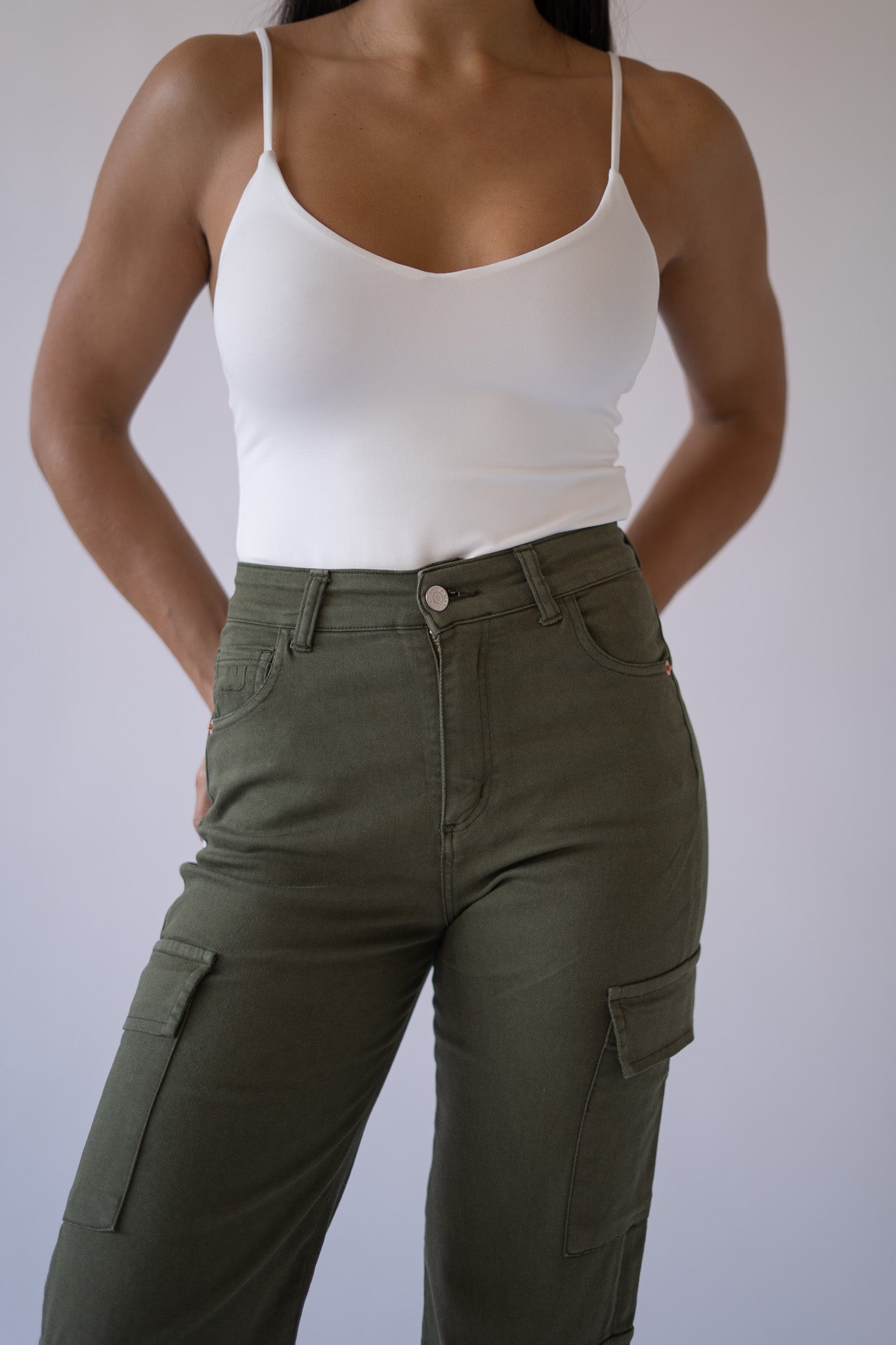 El modelo Cargo - THE BOLD se ajusta a la cintura y caderas y tiene un acabado ancho y con bolsillos. Es sin duda el pantalón del momento.