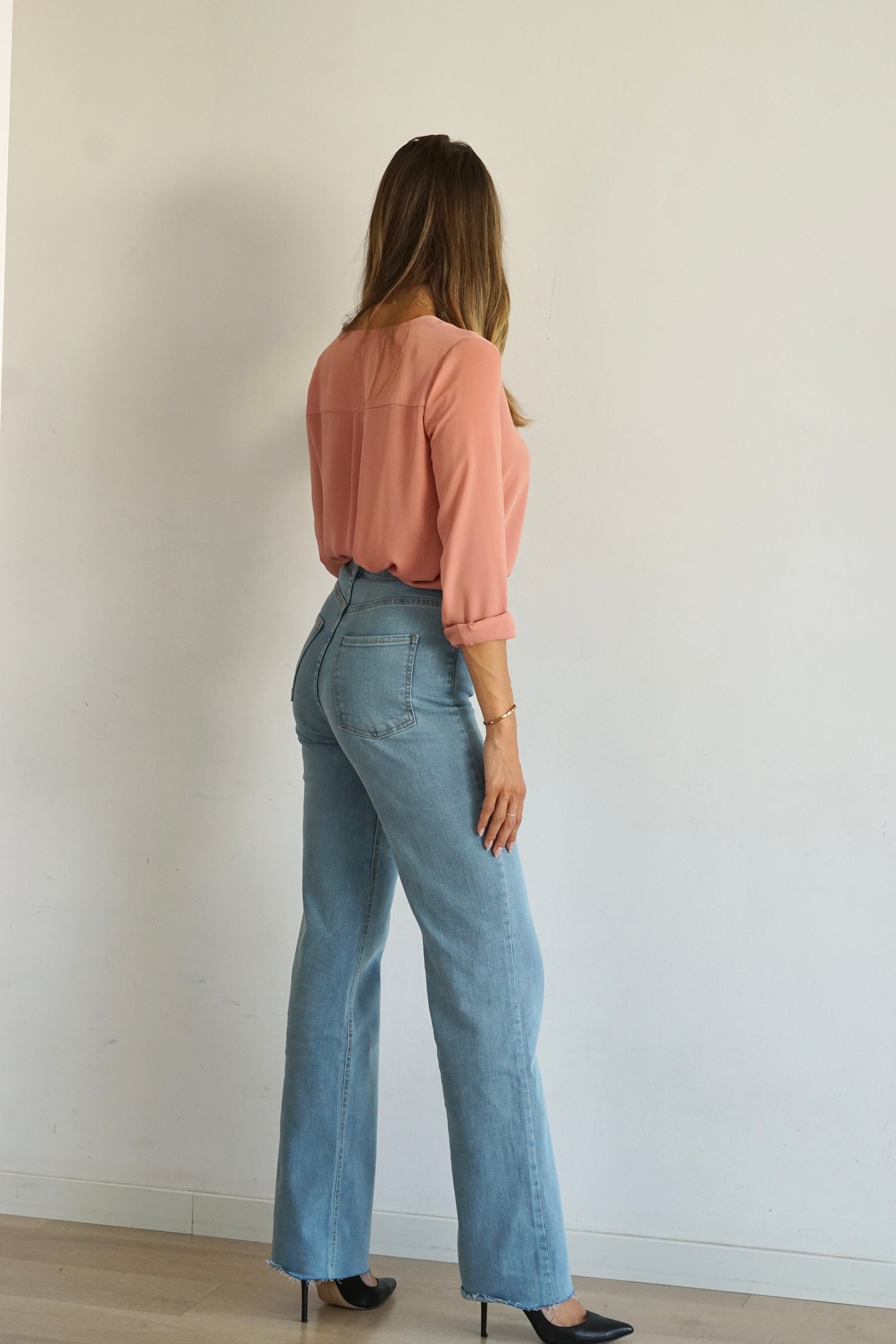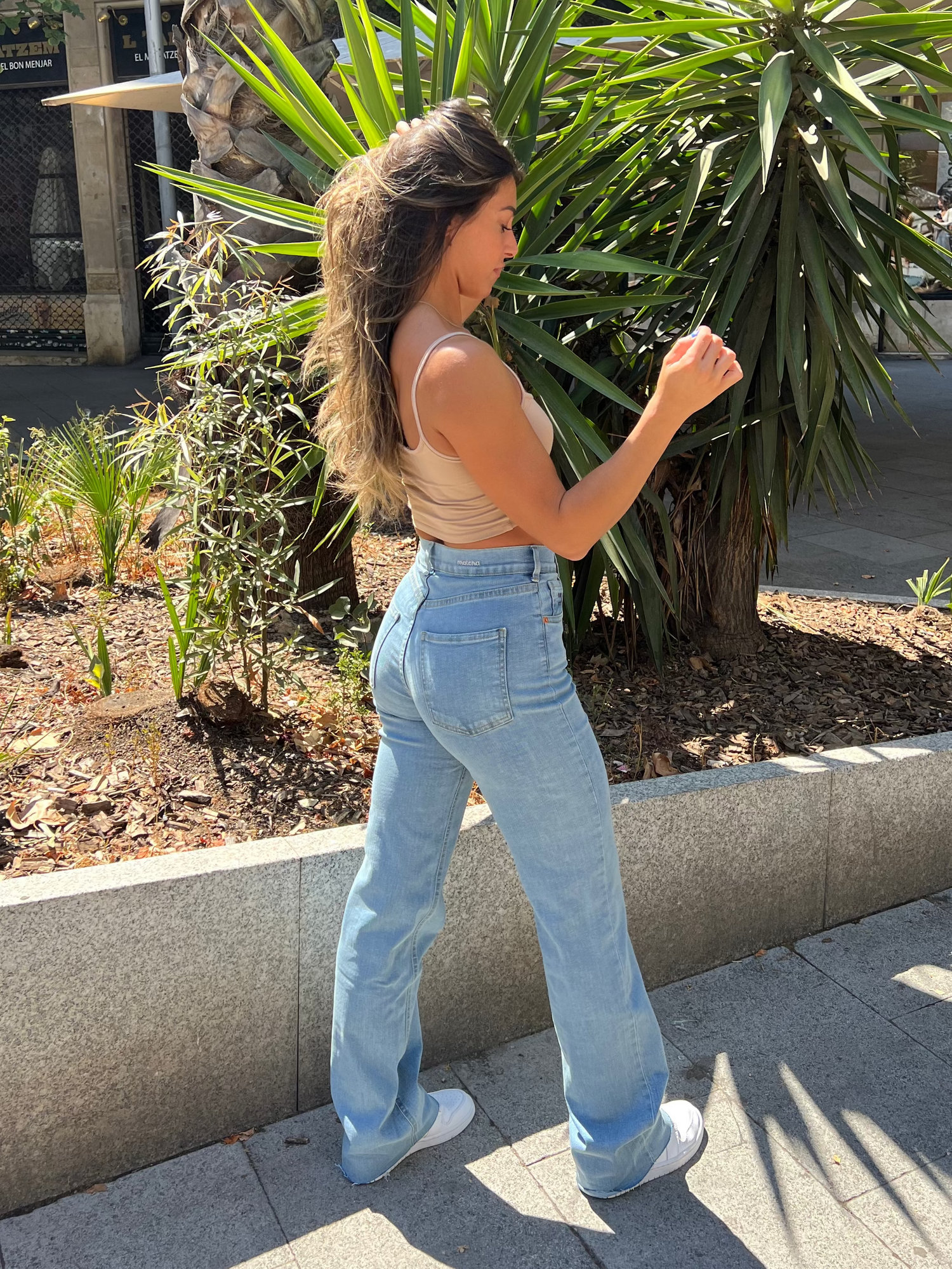 El modelo Wideleg - THE AIRY se ajusta a la cintura y caderas y tiene un acabado ancho. Es sin duda el pantalón del momento. La mayoría de vaqueros de pierna ancha del mercado son rígidos y es muy difícil encontrar unos que queden perfectos y sean cómodos. En Matcha Jeans hemos conseguido la solución: crear un vaquero que mantenga la estructura de éstos, pero que sea comodísimo y se adapte perfectamente a tu figura.