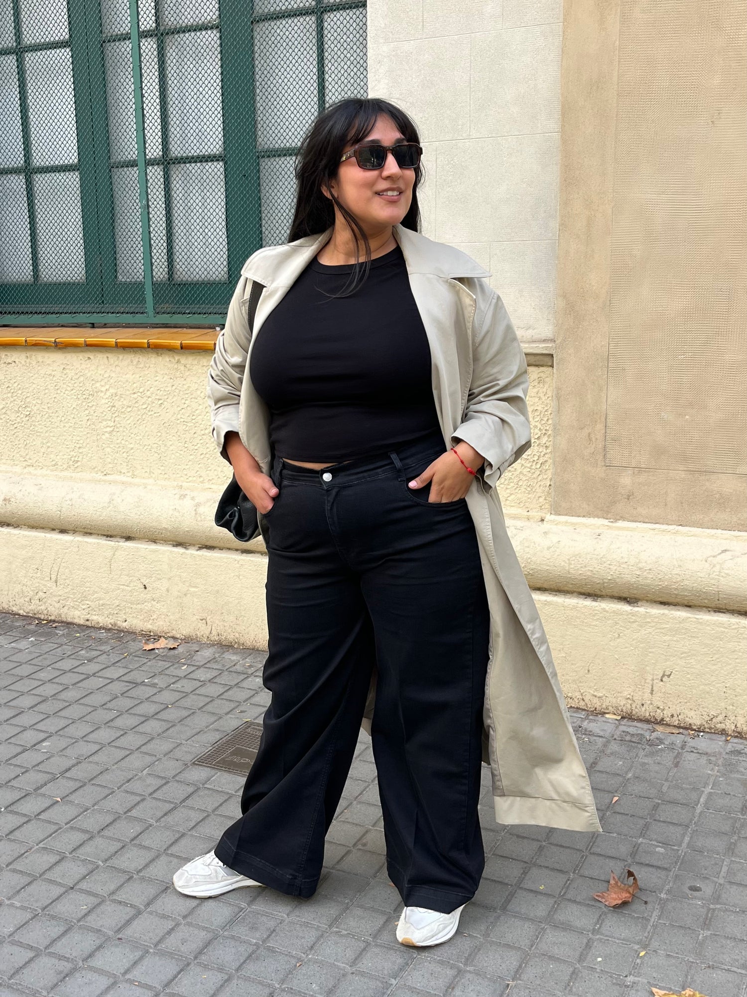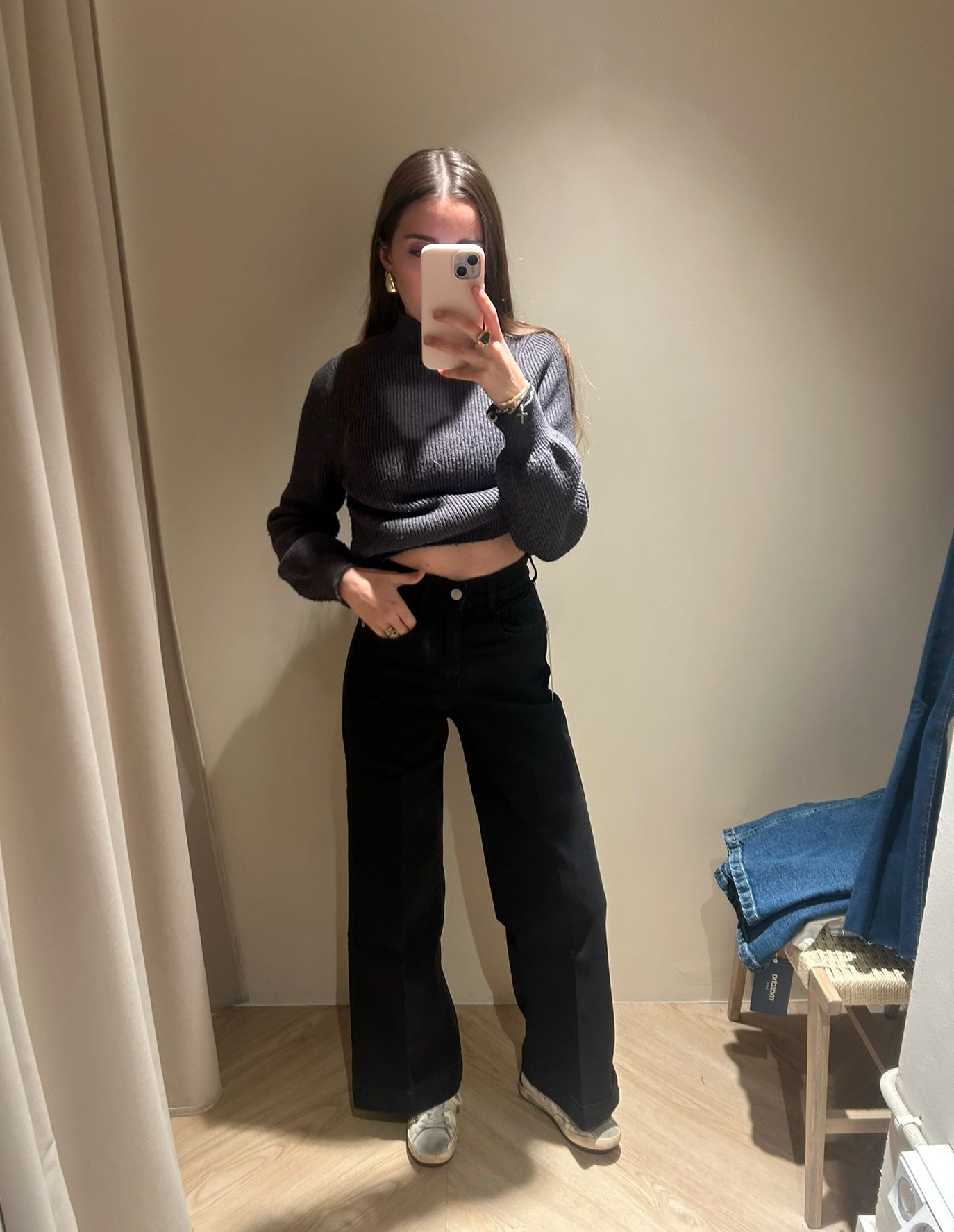 El modelo CULOTTE HIGH RISE se ajusta a la cintura y caderas y tiene un acabado ancho hasta el tobillo. Es sin duda el pantalón del momento.