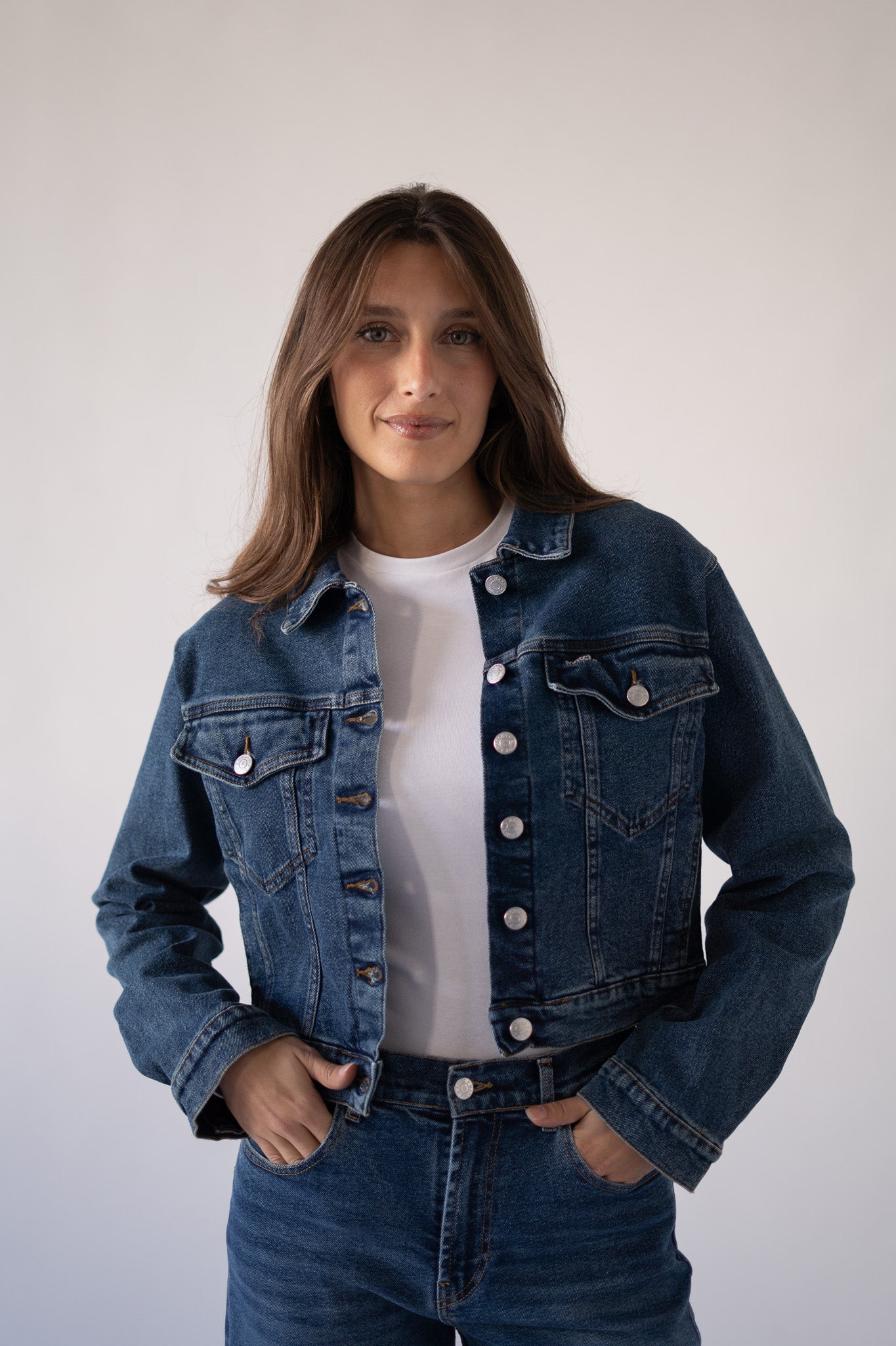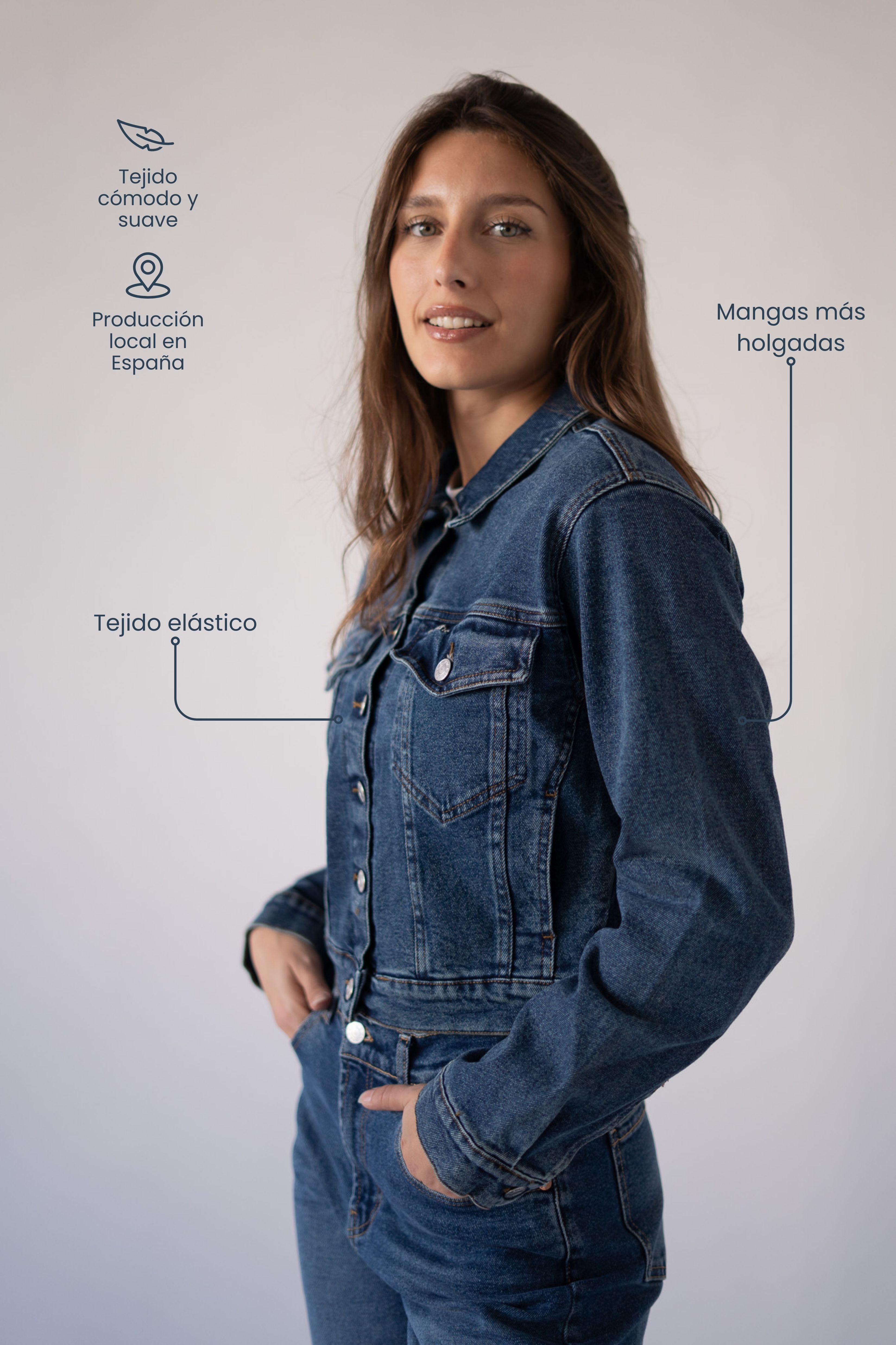 Esta cazadora vaquera en azul oscuro reinventa una prenda icónica con un diseño moderno, cómodo y favorecedor. Está confeccionada en un denim elástico que asegura la máxima comodidad y permite libertad de movimiento, sin perder el look auténtico del vaquero tradicional.