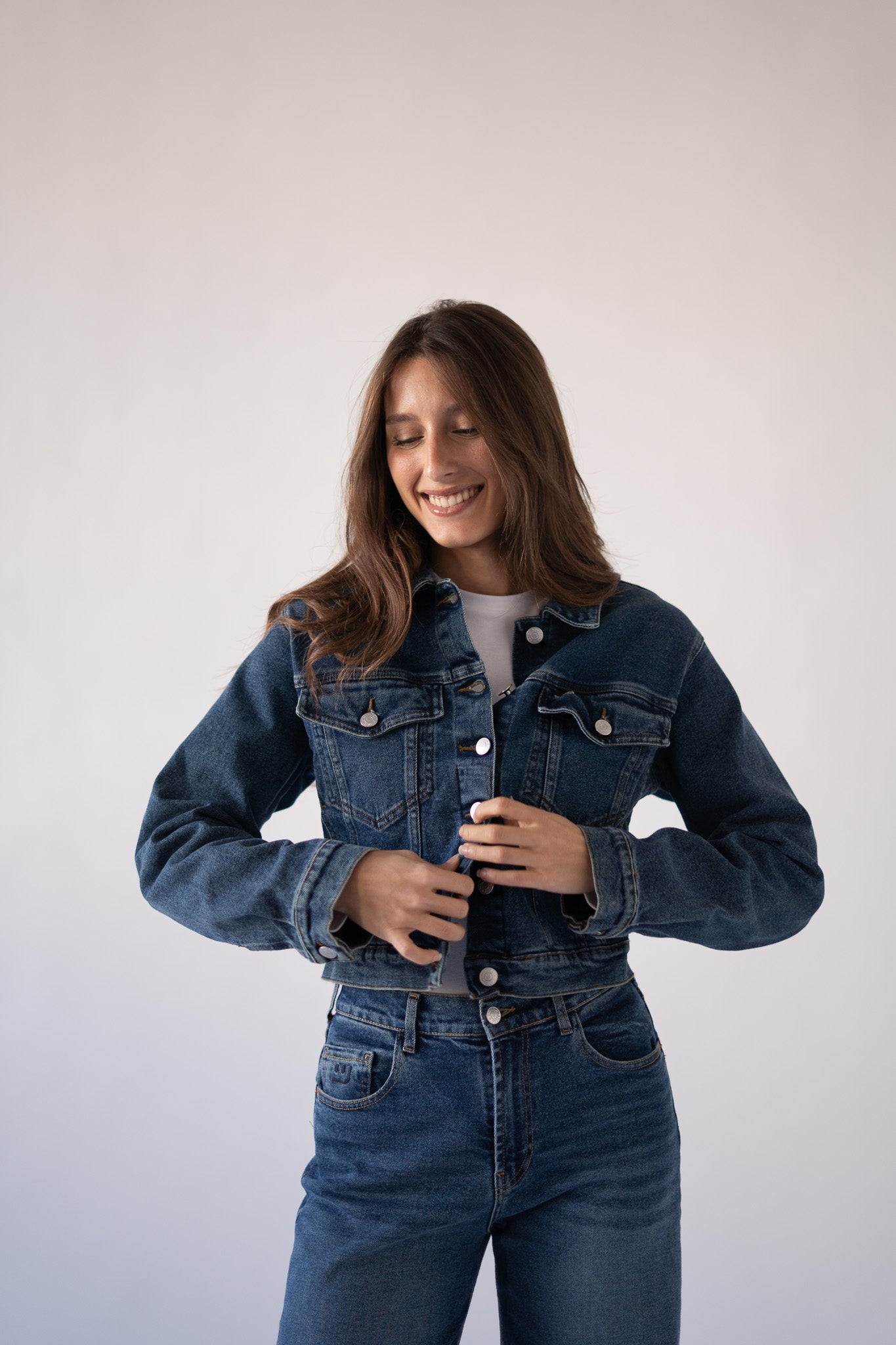 El corte entallado en el cuerpo realza la silueta, mientras que las mangas, ligeramente más largas y holgadas, aportan un aire actual y desenfadado. Tiene el largo perfecto para combinar con nuestros Matcha Jeans.
