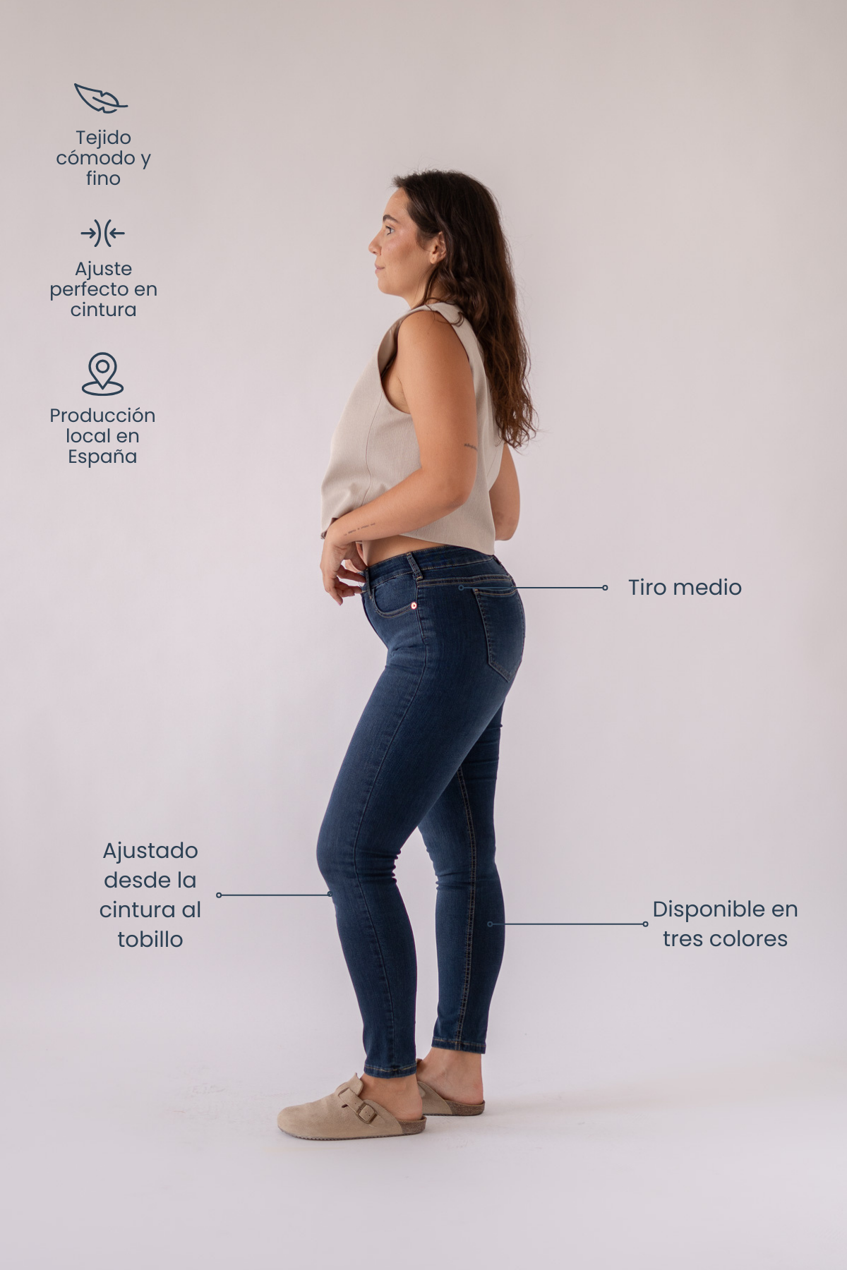 Os presentamos nuestros jeans cómodos que se ajustan a la cintura y caderas con acabado pitillo: el modelo Skinny - THE ORIGINAL. Se fabrican con un tejido de alta calidad muy elástico que hace que sean comodísimos, sin perder la apariencia de un vaquero tradicional.